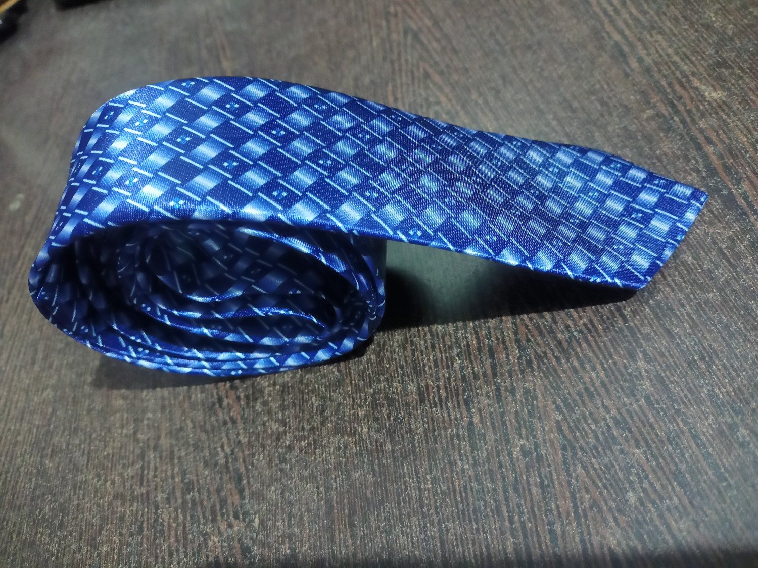 Blue50 blue checks printed Tie